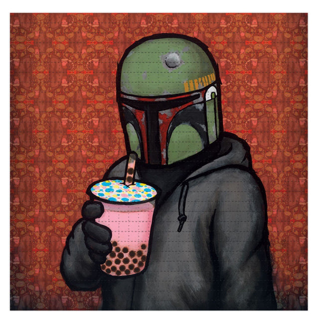 Boba- Something In The Tea Blotter Paper Limited Edition Archival Pigment Print Art on Perforated Blotter Paper by Luke Chueh Pop Culture LSD Artwork. 2019 Signed Limited Edition of 100. Archival Pigment Print on Perforated Blotter Paper Size: 7.5 x 7.5 Inches Release: April 19, 2019 Run of: 100 Limited blotter editions are hand-perforated & may vary slightly from the example shown.