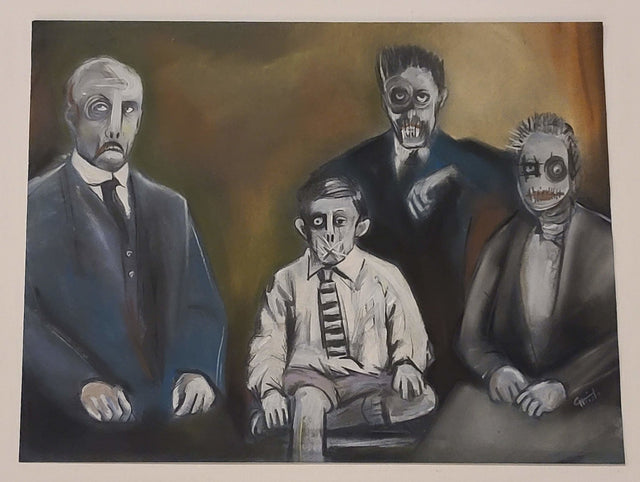 Perfect Family One of a Kind Original Pastel Graphite Drawing Artwork on Paper by Popular Street Graffiti Artist Christabel Christo. Signed 2010 10.5x8 Perfect Family Original Drawing by Christabel Christo