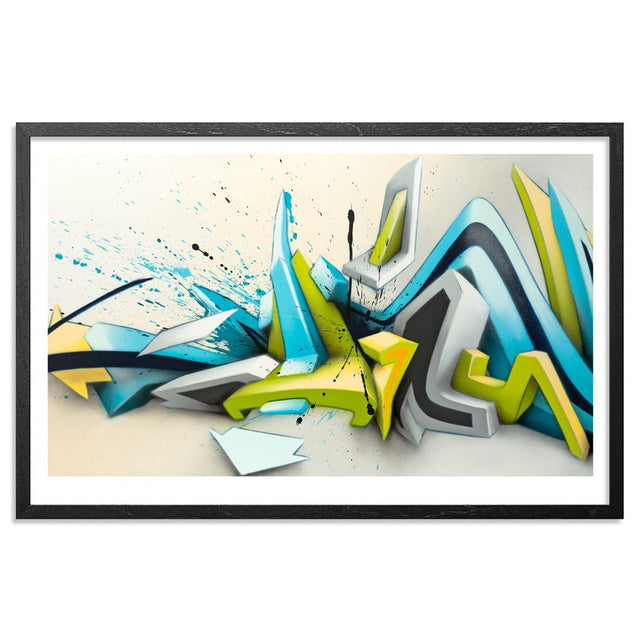 Wave Limited Edition Archival Pigment Prints on Museum Fine Art Paper by DAIM Graffiti Street Artist Modern Pop Art. 2016 Signed & Numbered Limited Edition of 100 Artwork Size 20x13 "In 1989 I wrote my writer’s name for the first time. After all those years I still see this lettering as a self-portrait. By concentrating on a certain idea, the technique or a style, by working on a certain piece for a long time frame, by totally engaging in this process, you get to know a lot about yourself and your personality. And this of course can be seen again in the works, that I create.I wanted to realize something special: The series of these three prints is chosen so that you can reproduce the entire spectrum of my work. My use of the name DAIM is becoming more and more complex in them. My development as a human being strongly corresponds with this process. It has something to do with personal maturing, the general situation of aging." - Daim Wave Limited Edition Archival Pigment Print by DAIM Wave by DAIM is a high-energy composition that exemplifies the artist’s groundbreaking approach to three-dimensional graffiti lettering. The limited edition archival pigment print on museum fine art paper captures the fluidity, motion, and architectural complexity that define DAIM’s signature style. The interplay of sharp angles, splashes of color, and structural layering in this work transforms traditional graffiti into an illusion of tangible, sculptural depth. Three-Dimensional Lettering and Graffiti Innovation DAIM, whose real name is Mirko Reisser, has been a pioneer in three-dimensional graffiti since the early 1990s. His mastery of light, shadow, and spatial manipulation allows him to create graffiti pieces that appear to extend beyond the canvas or wall. Wave showcases this expertise by presenting fragmented yet cohesive lettering that seems to explode outward in motion. The color palette in Wave consists of electric blues, acid greens, and deep grays, creating a contrast that enhances the sense of motion and force within the piece. The angular shards and fluid paint splatters evoke a feeling of energy colliding with structure, mirroring the natural yet chaotic movement of an ocean wave. DAIM’s ability to balance rigid precision with organic fluidity elevates his graffiti style into a form of sculptural abstraction. Personal Identity and Artistic Evolution For DAIM, his graffiti name is more than just a tag or artistic signature—it is an ever-evolving self-portrait. He has stated that his approach to lettering reflects his personal and creative growth over time. As he refines and expands the way he writes and interprets his name, he captures his own evolution as an artist and as a person. Wave is part of a curated series designed to represent DAIM’s journey through graffiti, design, and conceptual art. The increasing complexity of his compositions over the years illustrates a deepening of skill, perspective, and self-awareness. His process involves methodical deconstruction and reconstruction of letterforms, mirroring the natural cycles of creation, transformation, and renewal. DAIM’s Lasting Influence on Street Pop Art & Graffiti Artwork DAIM has left an undeniable impact on the world of street pop art & graffiti artwork, solidifying himself as a leading figure in three-dimensional urban lettering. His innovative approach has brought graffiti into galleries, museums, and fine art collections, proving that the movement is as complex and sophisticated as any other modern artistic discipline. Wave captures the essence of DAIM’s relentless pursuit of technical excellence and creative expansion. The piece serves as a visual representation of motion, structure, and self-exploration, resonating with both graffiti enthusiasts and contemporary art collectors. His ability to turn lettering into an immersive experience continues to inspire a new generation of graffiti artists who push the boundaries of street art as a legitimate and respected art form.