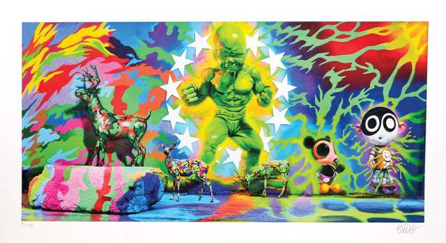 Temper Tot Wynwood Walls 10th Year Commemoration Artwork Giclee Limited Edition Print on Cold Press Acid-Free 100% Cotton Paper by Pop Culture Graffiti Artist Ron English- POPaganda. EDITION OF 75 Signed and numbered by the artist, 2015 10” x 18” Archival Giclee print on Cold Press Acid-Free 100% Cotton Paper / 305 gsm / 200lb Published by Goldman Global Arts, Miami. 8” x 16” with 2" borders on Archival Giclee print on Cold Press Acid-Free 100% Cotton Paper / 305 gsm / 200lb