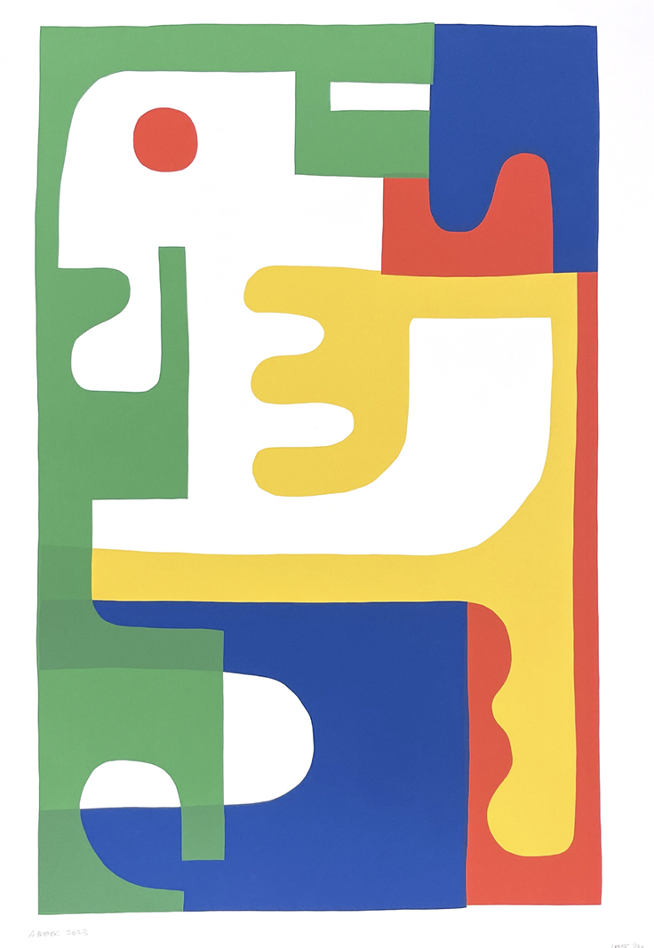 Créée en 2023 par l'artiste d'Atlanta Alex Brewer, connu sous le nom de Hense, la sérigraphie « Green/Blue/Red/Yellow 10 Year Anniversary » célèbre une décennie d'exploration artistique avec « The Jaunt ». Cette œuvre en édition limitée est un exemple saisissant d'art urbain abstrait, de pop art et de graffiti. Tirée à seulement 50 exemplaires signés et numérotés, chaque estampe mesure 50 x 70 cm et est imprimée sur papier d'art avec des techniques de sérigraphie audacieuses qui font écho à l'utilisation emblématique de la géométrie, des aplats de couleur et de la tension spatiale propre à Brewer. La composition, avec ses formes organiques imbriquées et sa palette de couleurs primaires vibrantes, rend hommage à ses fresques murales de grande envergure tout en offrant une rencontre plus intime avec son langage visuel.