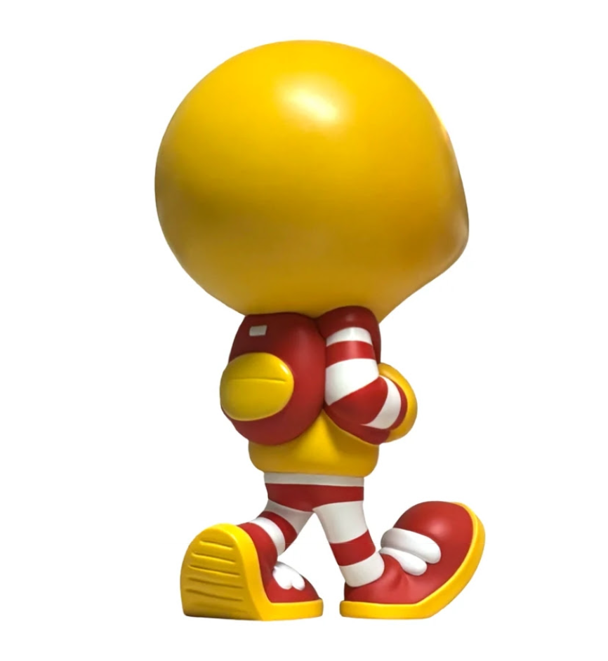 La figurine McVandul Walk, œuvre de l'artiste de rue Vandul, célèbre pour son style pop et graffiti, est une critique acerbe de la société de consommation, habilement présentée sous la forme d'une sculpture d'art de collection. Sortie en édition limitée à 100 exemplaires en 2025, cette figurine en vinyle de 10 x 18 cm est livrée neuve dans sa boîte, accompagnée d'un certificat d'authenticité estampillé, soulignant son exclusivité et sa valeur pour les collectionneurs. Le travail de Vandul fusionne fréquemment la culture du jouet et l'esthétique du graffiti, utilisant des images commerciales familières pour susciter un dialogue sur le marketing, l'identité et la marchandisation de la nostalgie de l'enfance. Cette figurine réinterprète les couleurs et les motifs immédiatement reconnaissables d'une icône mondiale du fast-food à travers le personnage emblématique de Vandul, sans visage et à capuche. Manches rayées rouges et blanches, chaussures jaunes surdimensionnées et tête jaune vif se fondent dans une posture légèrement avachie, suggérant à la fois familiarité et anonymat. Dans le style caractéristique de Vandul, l'absence de traits faciaux gomme l'individualité, faisant du personnage un symbole pour quiconque évolue dans un environnement façonné par l'influence des entreprises. L'œuvre rappelle à quel point les marques de consommation imprègnent profondément l'identité personnelle et culturelle. L'emballage renforce le propos de l'œuvre. La boîte rouge, ornée d'un sourire stylisé jaune, fait écho au marketing ludique de la restauration rapide tout en constituant un élément sculptural saisissant à part entière. L'iconographie graphique imposante, à la fois festive et satirique, plonge le spectateur dans une tension entre la joie des souvenirs d'enfance et les réalités de la société de consommation. Le graffiti apposé sur le côté affirme la paternité de l'œuvre dans un format où le marketing domine généralement, inversant le récit de la propriété commerciale à la réappropriation artistique. À la croisée du pop art urbain et du graffiti, McVandul Walk se situe au carrefour de plusieurs disciplines créatives : jouets design, art urbain sculptural et satire visuelle. Les figurines en vinyle de Vandul fonctionnent souvent comme des sculptures portables, faisant le lien entre les murs des galeries et les interventions urbaines. Cette édition particulière capture l'essence même du marché de l'art contemporain, où les figurines d'art sont devenues très recherchées pour leur commentaire culturel autant que pour leur qualité artisanale. Le travail de Vandul continue de repousser les limites de l'expérience du street art, au-delà des murs. McVandul Walk n'est pas simplement une figurine à exposer ; c'est une réflexion concise sur l'influence du marketing, la persistance des images de l'enfance à l'âge adulte et leur réappropriation à travers le prisme de la culture graffiti. Pour les collectionneurs et les amateurs de pop art urbain, cette édition limitée est à la fois un sujet de conversation et un témoignage de la finesse d'observation culturelle de Vandul.