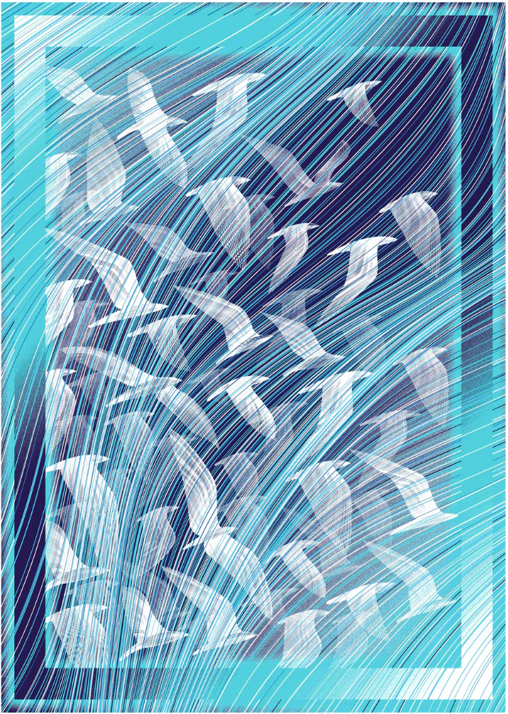 Sérigraphie Wild Migration de Kai et Sunny, tirée à la main sur papier d'art Somerset Radient White 410 g/m², édition limitée.