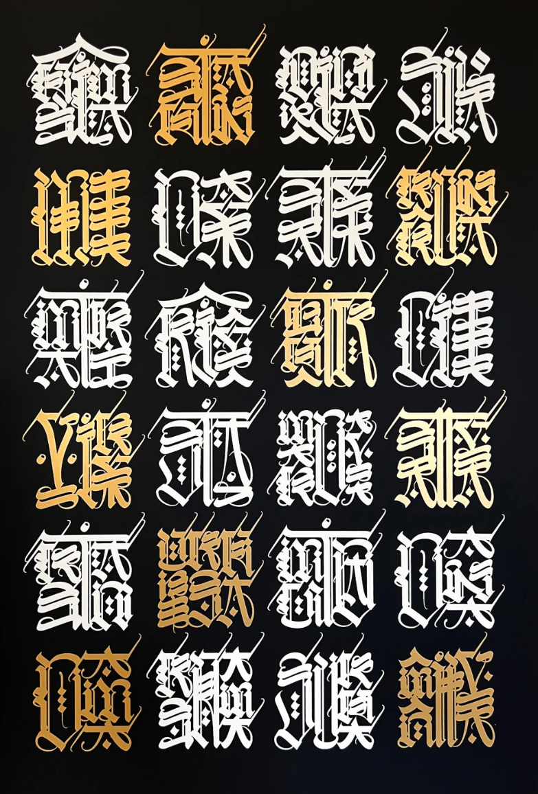 The 24 Virtues concept draws from historical moral frameworks found in Eastern philosophy and religious scholarship, where virtues function as behavioral anchors rather than abstract ideals. Cryptik translates these concepts into a visual language influenced by sacred scripts, manuscript traditions, and graffiti hand styles. Each glyph is meticulously structured, balancing weight, negative space, and directional flow in a way that reflects both mastery and restraint. The repetition across the grid reinforces the idea of practice and discipline, echoing how virtues are cultivated through consistency rather than isolated acts. Within Street Pop Art & Graffiti Artwork, this piece resists the impulsive or chaotic mark-making often associated with the street, instead asserting that control, patience, and intentionality are equally radical artistic statements.