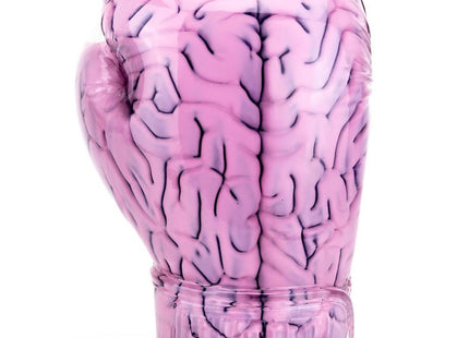 From the mind of Ron English- POPaganda comes to his latest twist on reality, weighing in at a whopping 8 lbs, standing tall at 11 inches, cast from realistically colored solid high impact resin, for the first time in the world, see a full-size brain cast inside of a perfectly recreated boxing glove...The Glass Jaw! Each Glass Jaw is a double-cast handmade artwork, created in NY by Clutter and comes in a special wooden box with a COA, all pieces are signed by Ron English- POPaganda. Limited to 10 pieces. Glass Jaw Glows in the dark!