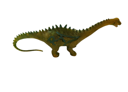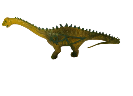Creating the "Graffiti Tagged Brachiosaurus" involved a meticulous application of spray paint and acrylic, techniques well-versed in the graffiti art scene. RD-357 has taken the familiar form of the Brachiosaurus and layered it with complex patterns and symbols that are intrinsic to the visual language of street pop art. The dinosaur's textured skin becomes a canvas for a dynamic interplay of colors and shapes, with each tag and stroke of paint adding to the narrative that RD-357 constructs. This narrative is one of juxtaposition - the innocence of a child's toy contrasted against graffiti's edgy and often transgressive nature. The Brachiosaurus, a creature from a bygone era, is recontextualized through RD-357's art as a contemporary cultural artifact. By taking an object associated with the past and childhood and merging it with the modern urban art form of graffiti, RD-357 makes a statement about the enduring nature of art, creativity, and expression. The graffiti tags are not just markings; they are the artist's language, speaking to themes of transformation, reinvention, and reclaiming spaces and objects for art.