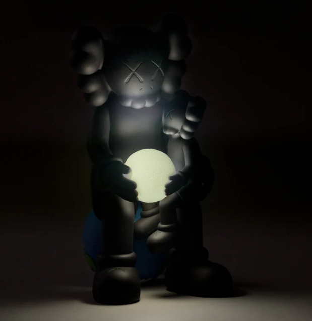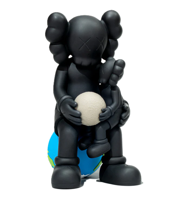 As with all KAWS Holiday editions, this sculpture was highly sought after at release and quickly sold out. The black version has become especially desirable due to its aesthetic rarity and its ability to convey depth through restraint. The use of minimal color enhances the sculpture’s interaction with light, especially when the moon begins to glow in the dark. The piece shifts dramatically between day and night, with the moon’s gentle illumination bringing warmth to the shadowed figures. This kinetic transformation has made it not only a visual object but an emotional experience. For collectors and enthusiasts of Street Pop Art & Graffiti Artwork, the Holiday Thailand Black Art Toy is more than a figure—it is a moment suspended in time, balancing silence, care, and cosmic symbolism through the signature visual language of Brian Donnelly.
