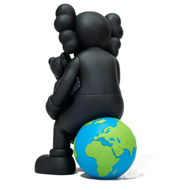 Brian Donnelly, born in the United States, rose from the streets of Jersey City where his early graffiti subverted public advertisements with satirical cartoons. His signature Companion figure became a modern icon in Street Pop Art & Graffiti Artwork, embodying themes of alienation, empathy, and memory. With the Holiday Thailand series, Donnelly introduced a softer, more meditative layer to the Companion's identity. The Holiday Black edition pushes this even further—its somber tone and striking globe-seat foundation underscore the idea of the figure as a caretaker of a fragile world. The signature X-ed eyes and cartoon gloves remain, but instead of sarcasm, they now seem to express stillness and reflection.