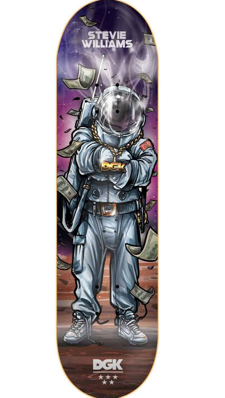 2021 Limited Edition Sports Artwork Skateboard Size 8x31 Skateboard Art Deck Printed Art Object Skate Pro Stevie Williams x DGK Astronaut Space Stylized Board.