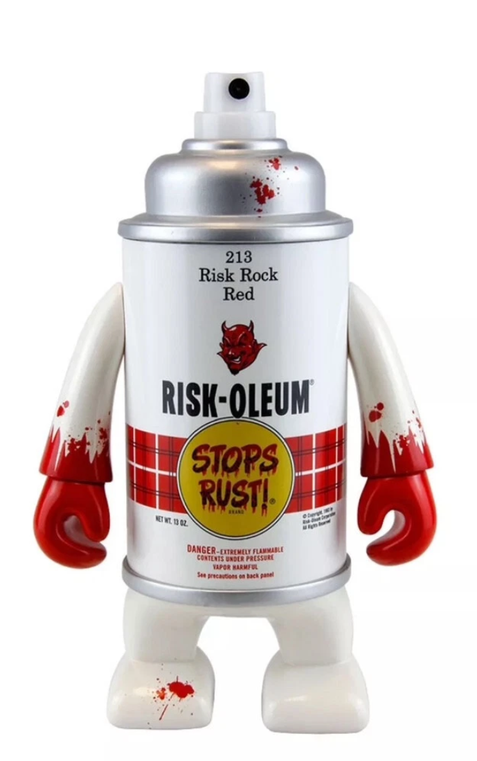 Los Angeles graffiti icon Risk designed the Risk-Oleum 213 Risk Rock Red vinyl Canman figure as his exclusive release for Stan Lee's Comikaze 2013. Limited to 200 pieces, the figure is part of The Canmans series, originally created by fellow LA graffiti artist Tyke, celebrating graffiti culture through collectible spray can-inspired vinyl figures. The RISK-OLEUM Red Canman 213 Artist Edition is a 2013 vinyl sculpture designed by legendary graffiti artist Kelly Graval, known as Risk Rock, in collaboration with Comikaze. Produced as a limited edition of only 200 pieces, this 4 by 7 inch art toy transforms the classic Rust-Oleum spray paint can into a fully formed, collectible character. This figure features moveable arms, a hollow body with pop-off cap, and fully illustrated branding inspired by graffiti culture and American consumer iconography. As part of the original The Canmans series, it stands out for its blend of nostalgic form, function, and contemporary fine art sculptural appeal. Created in homage to the tools of graffiti and the culture it comes from, the RISK-OLEUM Red edition holds a unique place in the development of Street Pop Art & Graffiti Artwork as a legitimate sculptural movement.